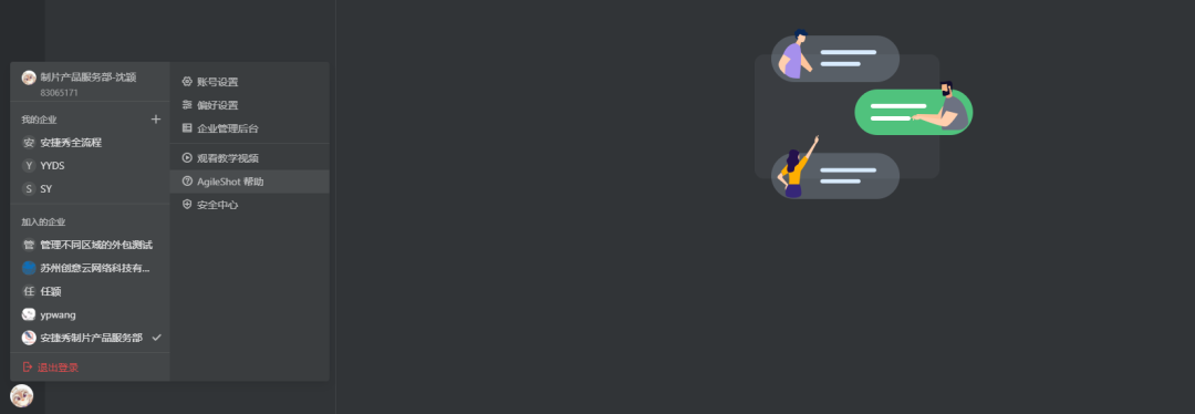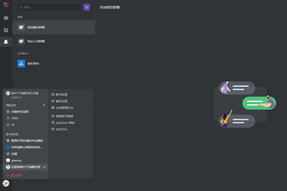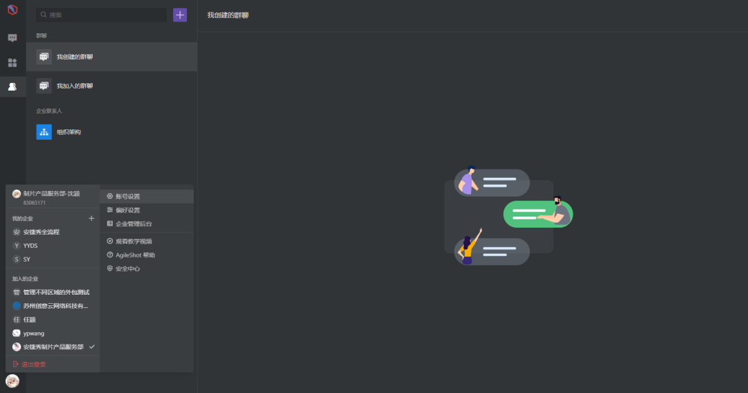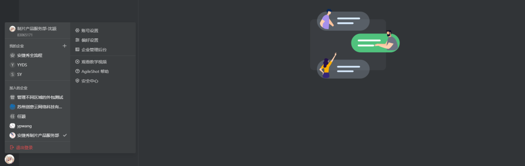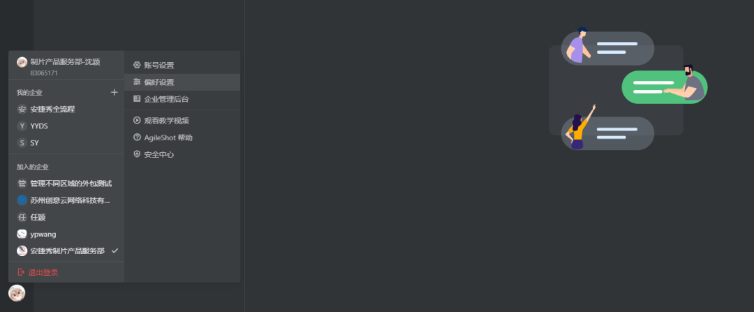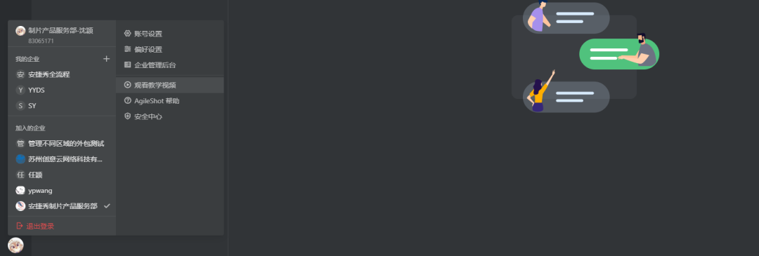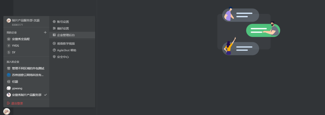 我加入的企业、快速退出登陆