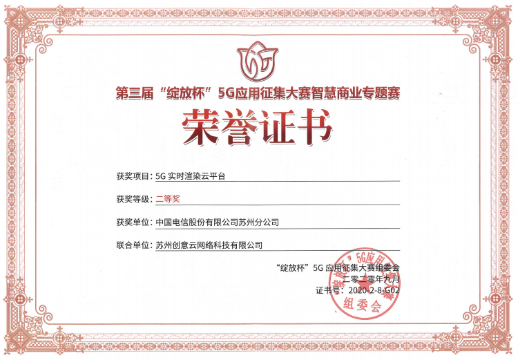 为确保实时渲染全流程过程中数据传输的高效与稳定,蓝海创意云还携手中国电信打造了国内最大的5G实时渲染云平台,该项目在工信部组织的绽放杯5G应用大赛中脱颖而出,获得了商业组全国二等奖。