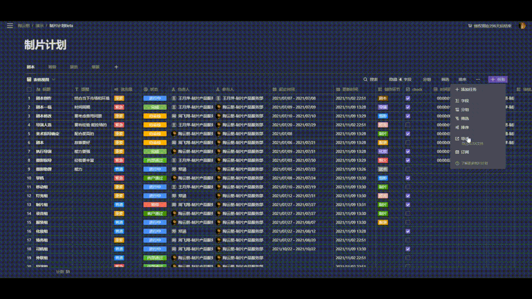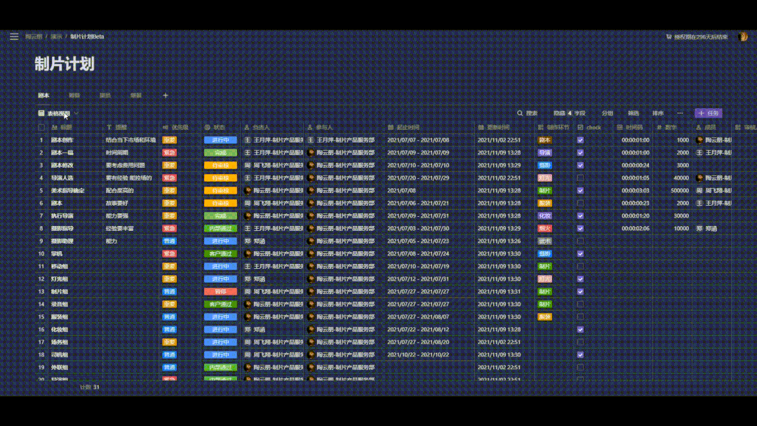制片计划首先是一份计划,但同时也是影视项目进度、状态和优先级以及多部门协同工作的管理工具;